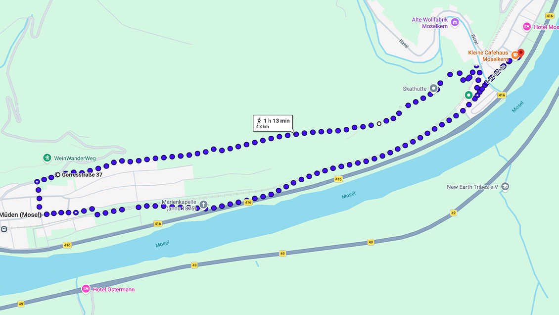 Die Moselsteig Etappe 20 führt auf 13,6 km von Moselkern bis nach Treis Karden und verbindet eindrucksvolle Natur, geschichtsträchtige Orte und echte Höhepunkte der Region.